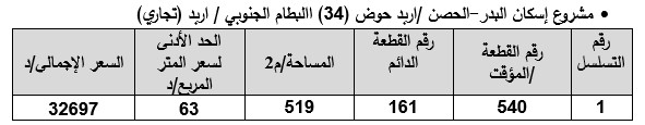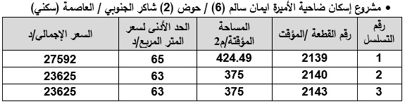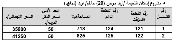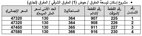 تعلن المؤسسة العامة للإسكان والتطوير الحضري للمواطنين الكرام عن توفر قطع أراضٍ سكنية وتجارية معروضـة للبيـع بالمــزاد بالظــرف المختــوم ضمن المواقـع المبينة أدناه: -