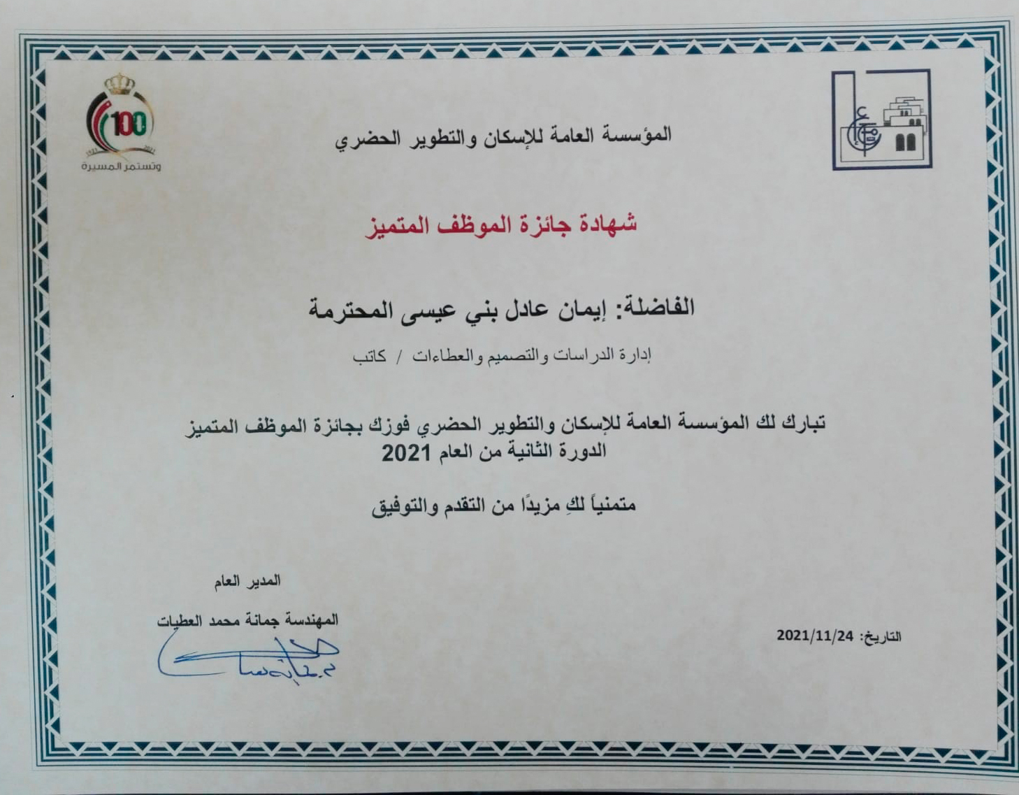 الفائزين بجائزة الموظف المتميز عن الدورة الأولى من العام 2021