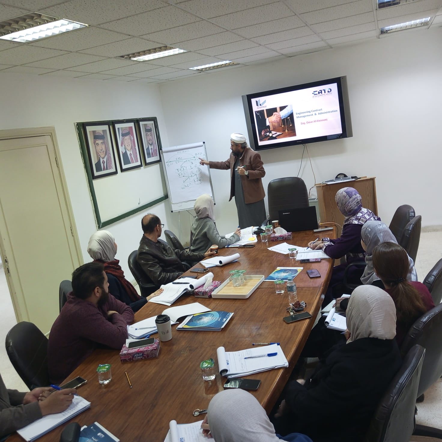 The program covered the definition of contracts in general and construction contracts in particular, with reference to the definition of contracts in the Jordanian Civil Code and the sources of personal rights, foremost among them the source of contract and sources of obligation.